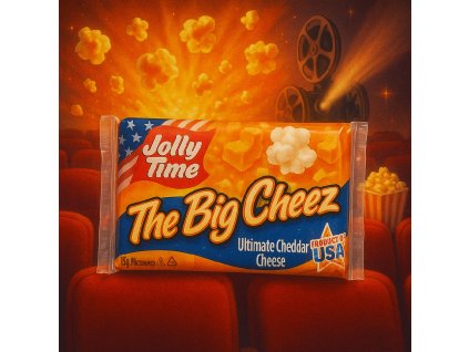 Popcorn Jolly Time The Big Cheez 100 g – cheddarová exploze, ideální ke kódu i filmům o hackerech.