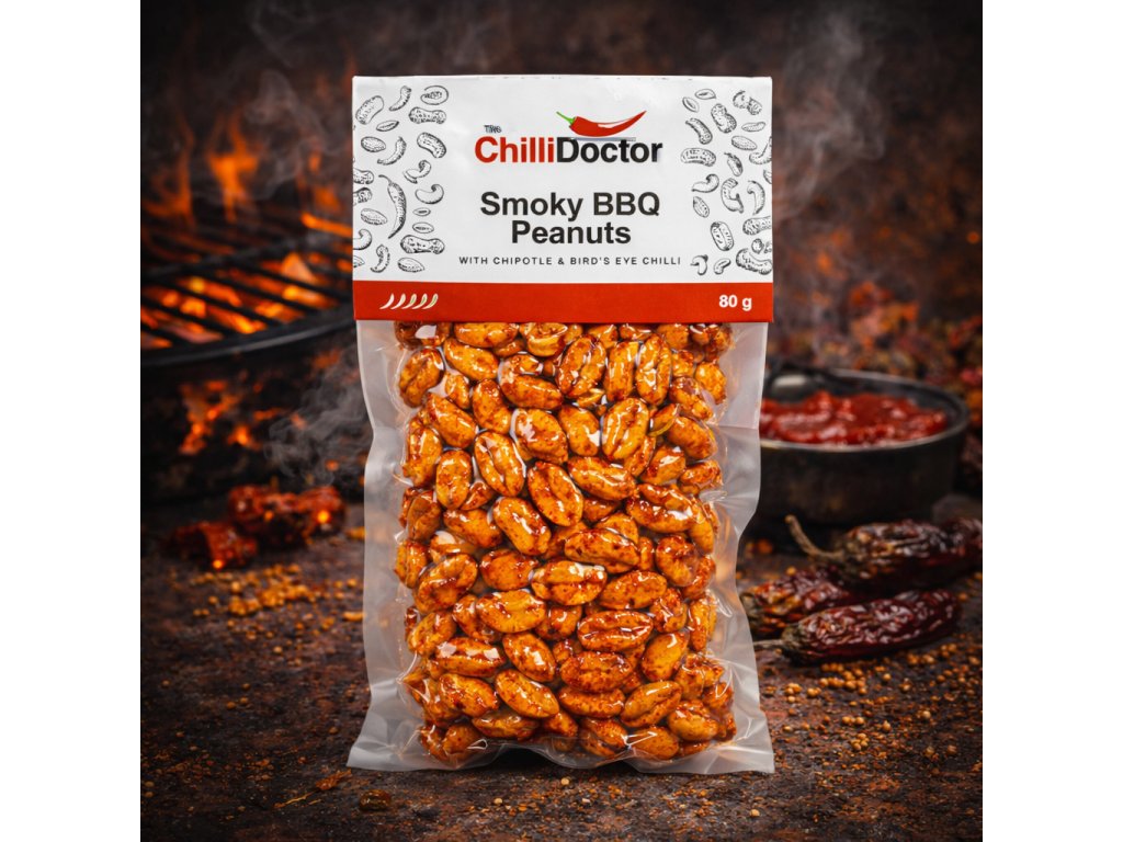 Arašídy pražené nesolené 94,4 %, směs koření 1,6 % (sůl, kukuřičný škrob, směs koření, cukr, E468, maltodextrin, rostlinné oleje (řepkový, kokosový, slunečnicový, palmový), E330, kouřové aroma), Chipotle chilli prášek 1,2 %, rostlinný řepkový olej, jedlá sůl max. 1 %, chilli prášek Bird’s Eye 0,8 %.