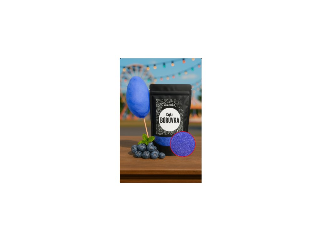 Složení: hrubozrnný krystalový cukr, síran sodný (E514); škrob pšeničný (bez lepku); barviva E122 (4,1%), E132 (6,1%); borůvkové aroma; konzervační látky a antioxidanty (nejsou přítomny).