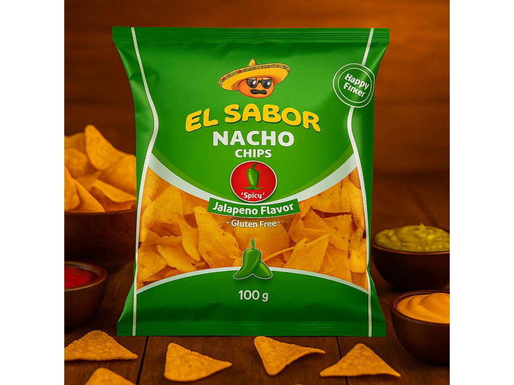 Křupavé kukuřičné NACHOS tortilla chipsy se delikátní příchutí jalapeno v praktickém 100 g balení. Ideální slaná pochoutka k filmu (vínu či pivu), párty i venku na výletě. Nemusí se již nijak ohřívat, připravena k okamžité konzumaci. Můžeme je použít na zapékání se strouhaným sýrem (cheddar), ale nejoblíbenější jsou servírované spolu s mexickou rajčatovou omáčkou salsa nebo sýrovou salsou.