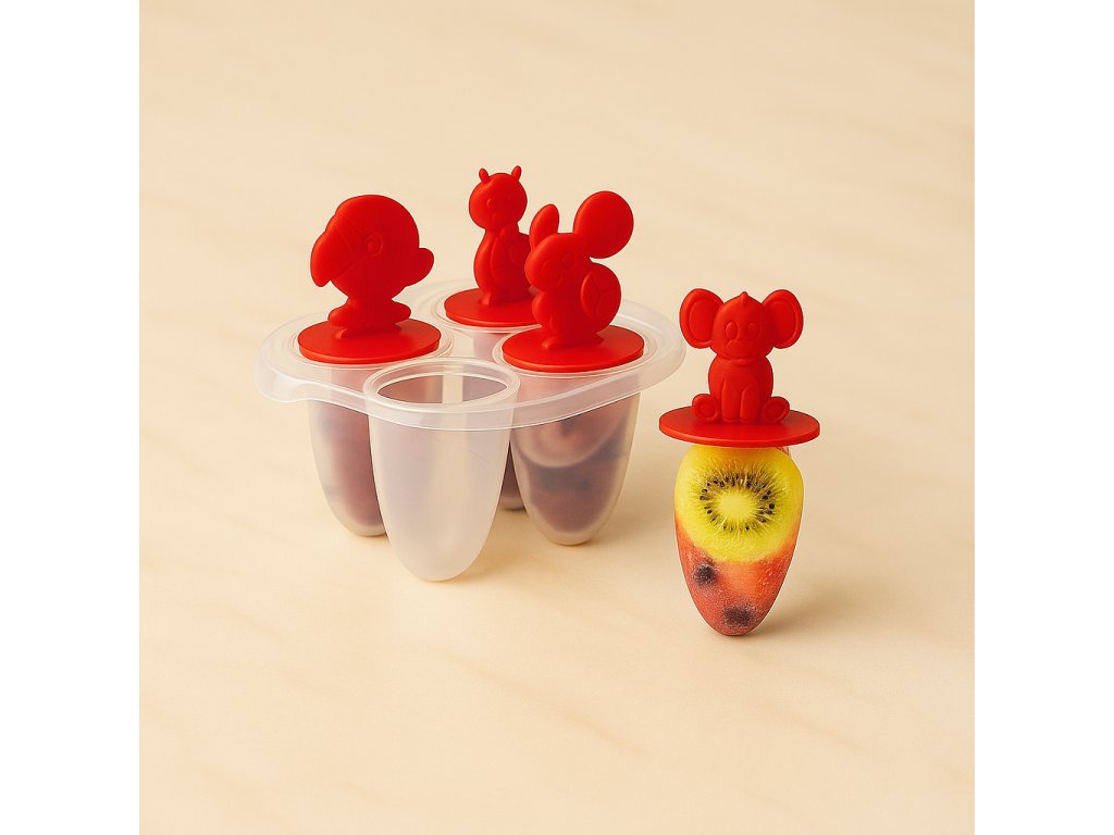 4× tvořítko s držátky ve tvaru zvířátek – protože nanuk chutná líp, když ti na něj kouká třeba medvěd