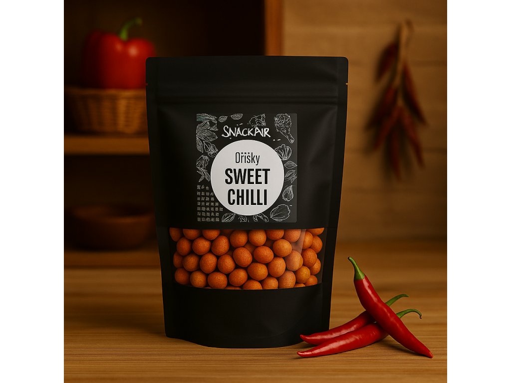 Arašidy, pšeničná mouka, modifikovaný kukuřičný škrob, chilli mix prášek (maltodextrin, sůl, cukr, sušená syrovátka, chilli prášek, hydrolyzovaná rostlinná sójová bílkovina, protihrudkovací látka: E551, zvýrazňovače chuti: E631, E627, barviva: E160c, regulátory kyselosti: E330, příchuť: thymol, lékořice), cukr, palmový olej, barvivo: E160b.