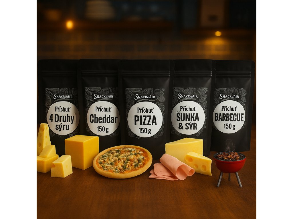 Popcorn příchutě 5 x 150 g (šunka sýr, cheddar, pizza, 4 sýry, BBQ)