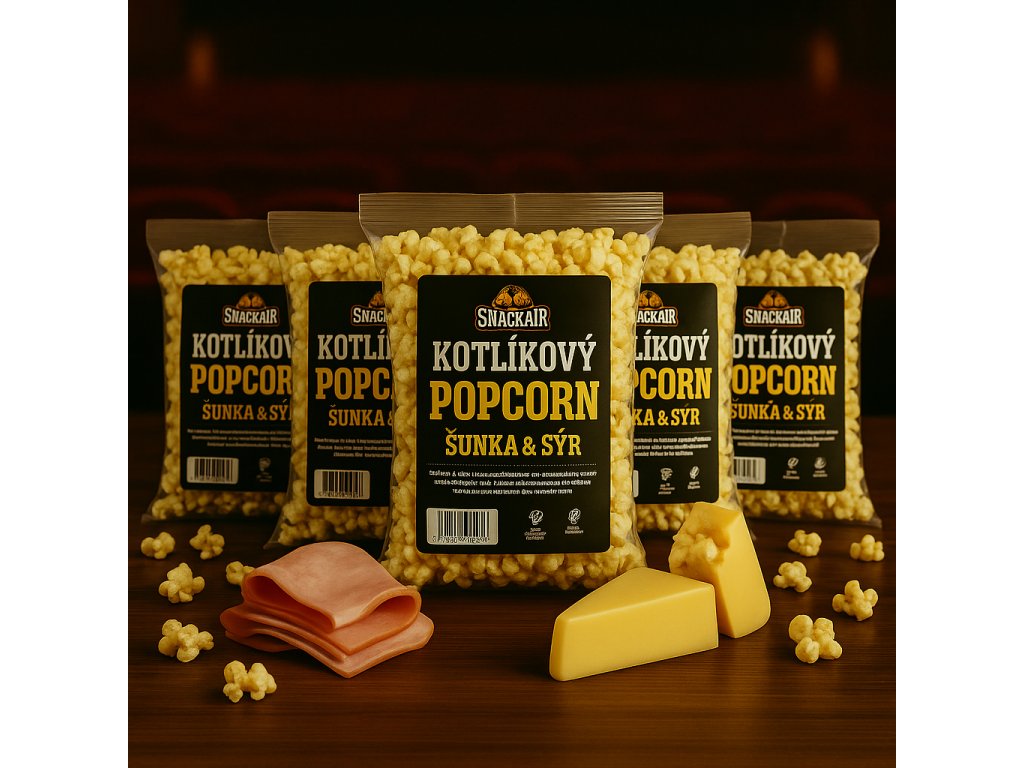 5× 2 litry popcornu šunka & sýr, takže zásoba jak pro partu kámošů, tak i pro sólový binge-watching