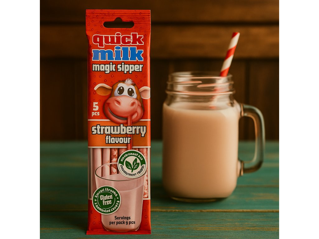 Quick Milk Magická brčka do mléka příchuť jahoda 30 g