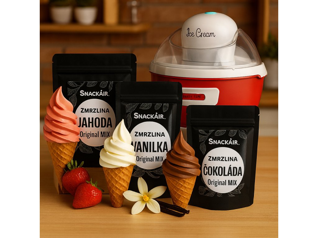 Set na domácí zmrzlinu (zmrzlinovač a směsi) RED