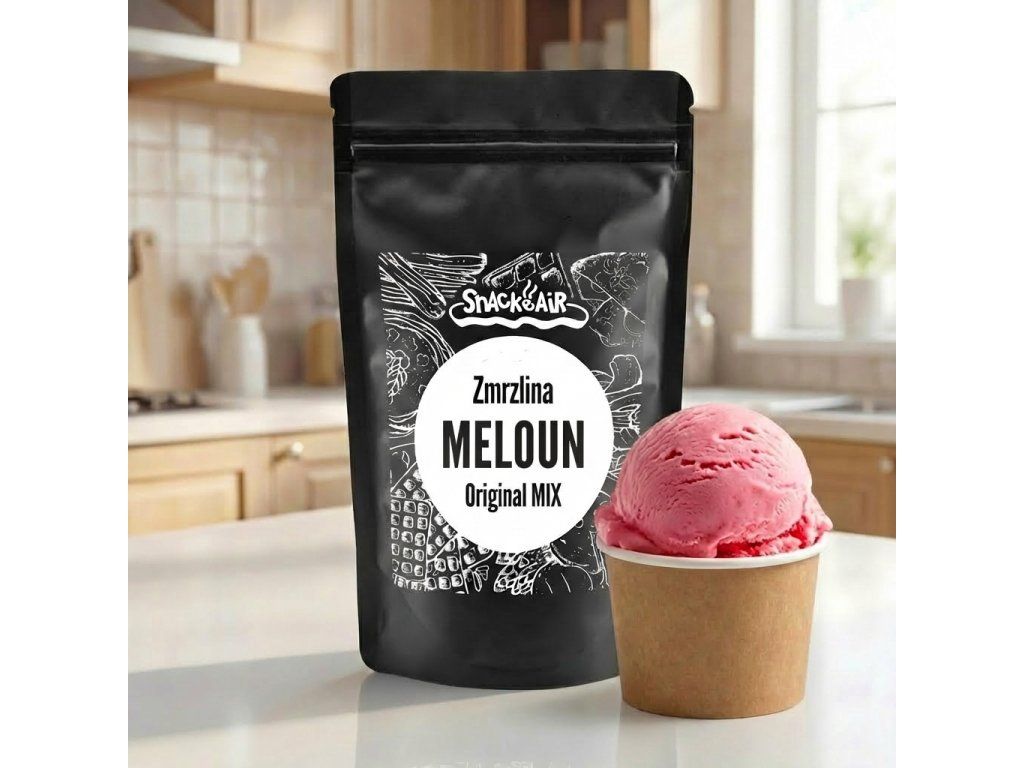 Sypká směs, co promění vodu ve fresh melounovou bombu. Zmrzka tak šťavnatá, že ti soused zazvoní jen proto, aby si líznul.