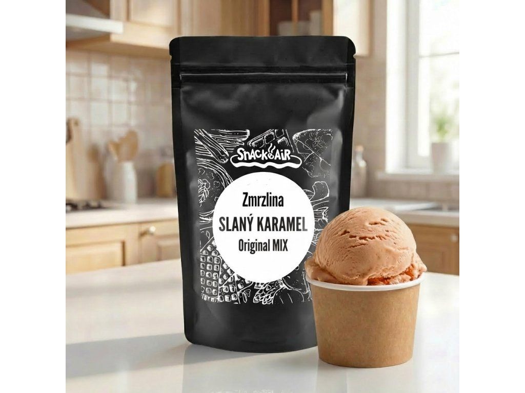Sypká směs na zmrzlinu, co se po smíchání s vodou promění v luxusní, hustej a krémovej karamelovej hřích.