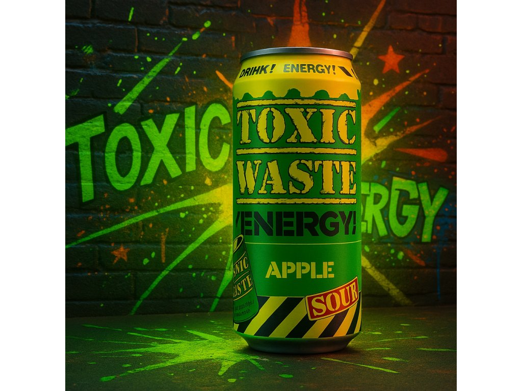 Energetickej nápoj, co se nesere s jemností. Toxic Waste Sour Apple je kyselý jak tvoje ex a silný jak rána pěstí po čtyřech panácích tequily. 500 ml plech radiace, co tě probudí i z klinický smrti (nebo aspoň pondělní meetingy).