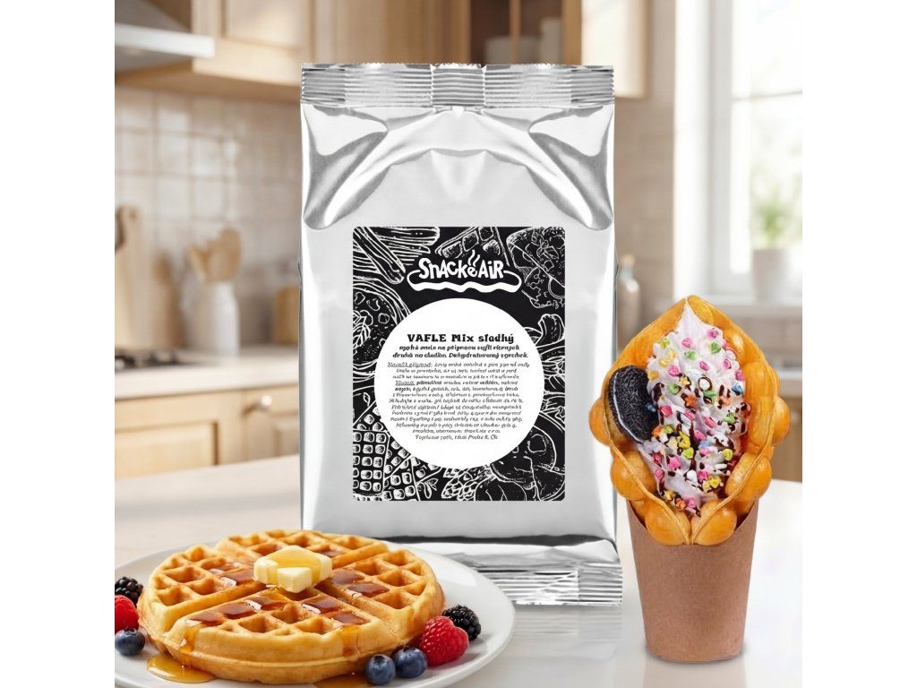 📦 Obsah: 1 kg směsi = cca 20 ks vaflí (160 × 100 × 20 mm)